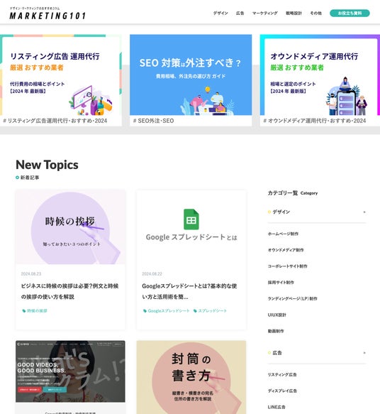「マーケティング101」は、初心者の方からプロの方まで、マーケティングのおすすめ情報や・ノウハウ・事例をご紹介するために立ち上げられました。20年以上デザイン・マーケティング業界で活躍するスタッフの監修のもと、マーケティングに興味のあるユーザーに、他のメディアにはないリアルで新鮮な情報をお届けしています。
