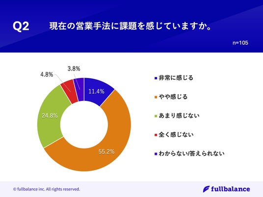 「Q2.現在の営業手法に課題を感じていますか。」(n=105)と質問したところ、
