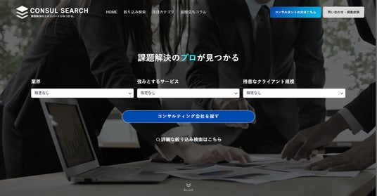 CONSUL SEARCH は、こうした状況を踏まえ、事業者とコンサルティング会社のマッチングを円滑化し、企業の課題解決を加速させることを目的としてリリースされました。