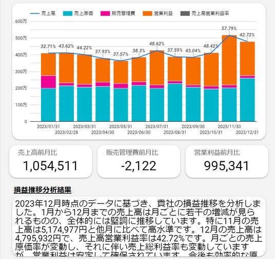 経営状況のリアルタイムコメント生成: 財務指標の変動や傾向について、会計税務の専門家がコメントを作成します。