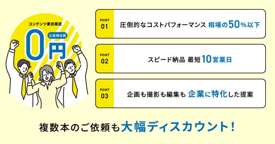 初めて動画制作をする企業の方でも安心してご依頼いただけるように、相場よりも低価格・短納期・高品質な映像作品をご提供します。
