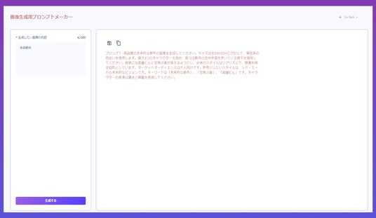 生成したい画像の内容を記入するだけで、詳細な画像生成用のプロンプトが作成されます。