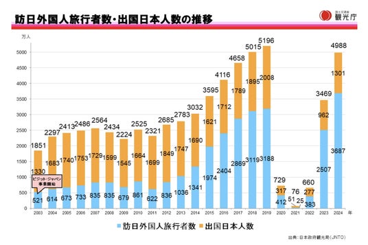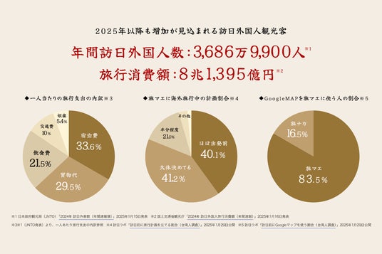 ※1 「訪日外客数 2024年年間推計値」2025年1月15日 日本政府観光局(JNTO)発表 ※2 「インバウンド消費動向調査2024年年間調査結果(速報)」 2025年1月15日 観光庁発表