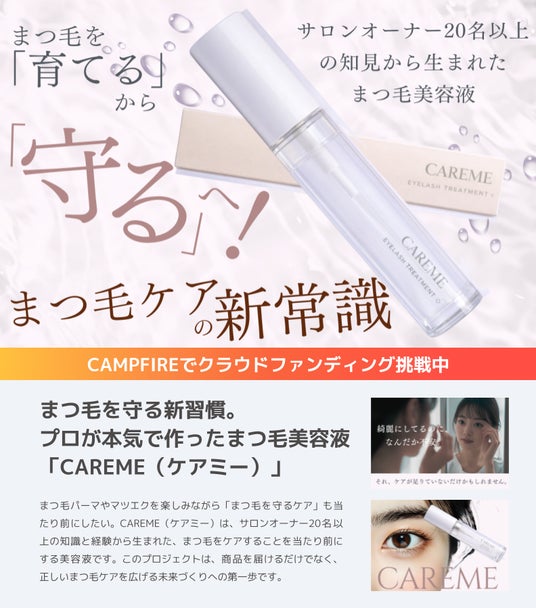 美容サロンオーナー向けコンサルティング事業を展開する株式会社AKIKO COMPANY(所在地:大阪府大阪市/代表取締役:山本あきこ)は、全国の美容サロンオーナー20名以上とともに、まつ毛パーマやマツエク施術後のまつ毛を「育てる」のではなく「守る」ことに着目した新発想のまつ毛美容液 「CAREME(ケアミー)」を開発しました。