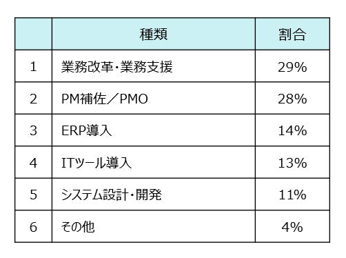 業務改革・業務支援、PM補佐/PMO案件ともに