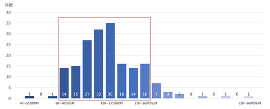 80~160万の案件が全体の90%を占め、ボリュームゾーンの単価感となっていることがわかりました。