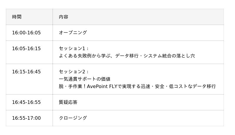 本セミナーにご参加いただくことで、貴社が抱えるデータ移行・システム統合の課題を解決するための、具体的かつ実践的なヒントが得られます。60分で、データ移行の