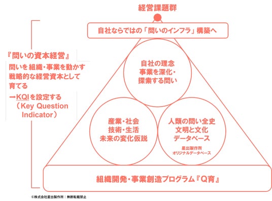 このたび星出製作所は、AI時代の経営を支える組織開発・事業創造プログラム『Q育(キューイク)』を開発しました。生成AIが瞬時に妥当な解を導き出す現在、組織の創造力は問いの質で決まります。問いの重要性は、もはや前提です。いま求められているのは、問いを経営資本として育成しマネジメントする観点です