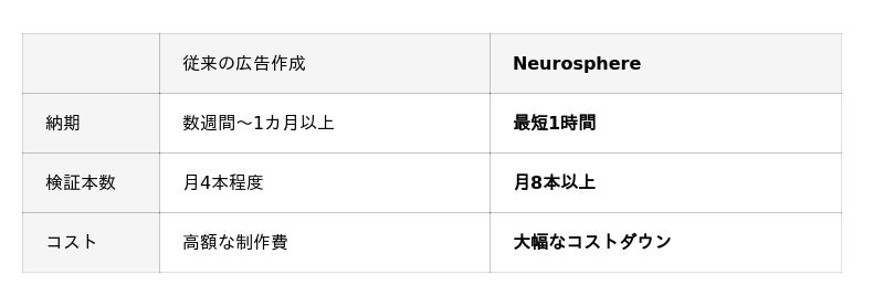 「動画広告の質と量、スピード」が成否を決める時代にもかかわらず、その手段が整っていない--Neurosphereはこの構造的な課題を解消するためのサービスを同時リリースします。
