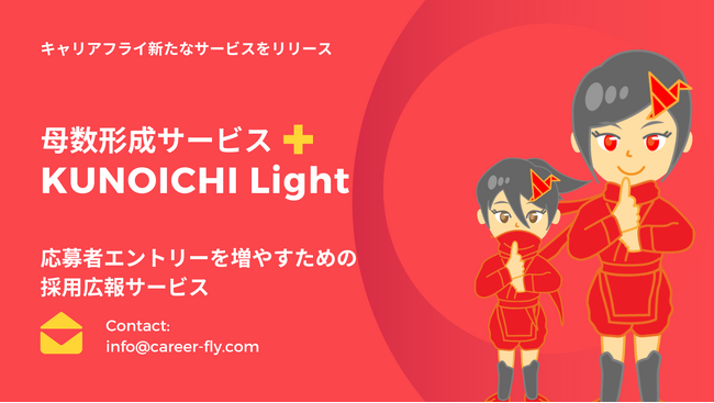 採用における母数形成をお助けするKUNOICHI Lightサービス。採用につなげるためにエントリーを増やしたいができない、新しいやり方がない、という課題を解決します。