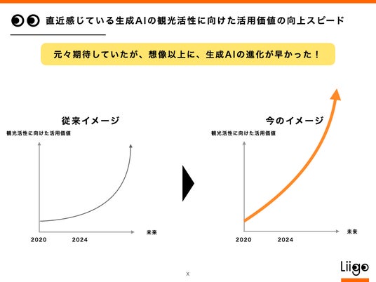 そのため、私たちは観光業界における生成AIのリーダーを目指して、業界の生産性の低さや人手不足の問題を解決し、活性化を図りたいと考えています。まだ十分に活用されていない観光地の潜在力を引き出し、その魅力を最大限に発揮させることで、旅行者にとっての面倒を減らし、感動を最大にすることを目指します。
