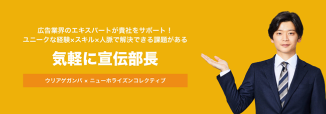 株式会社電通ランウェイ(本社:東京都港区、代表取締役社長執行役員:河勝重之 以下、当社)は、当社が運営する売上アップに貢献する広告サービス「ウリアゲガンバ」において、広告のエキスパートがクライアント企業の皆様の課題解決をサポートする「気軽に宣伝部長」、および、広告会社、制作会社等、マーケティングサービスを提供する企業の皆様のメディア領域における提案サポートを行う「ウリアゲガンバ for Agency」の提供を開始いたしました。同時に、広告の基礎や業界の最新トレンドなどを紹介する広告お役立ち情報メディア「ウリアゲガンバPLUS」もオープンいたしました。