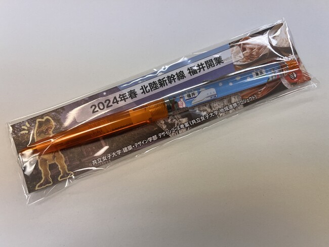 「実用性もあり、可愛いデザインになりました。老若男女問わずぜひ多くの人に利用していただき、北陸新幹線福井開業を知ってもらうきっかけになってほしいです。自分自身が手がけた作品が実際に世に出る、という貴重な経験ができ、学生生活に強く残る想い出になりました」(共立女子大学3年 建築・デザイン学科デザインコース 神立百花さん)