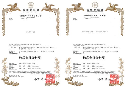 結果、顧客から高い評価を受けるようになり、取引先が増加。2023年には感謝状をいただくなどの成果が生まれました。これを受け、分析屋は「おもてなし」の価値を世の中に広げる必要性を強く感じ、2024年に企業理念を「おもてなし」を軸としたものに刷新。企業コンセプトも「おもてなし分析」として策定し、商標登録(登録第6866267号・登録第6866268号)を行いました。