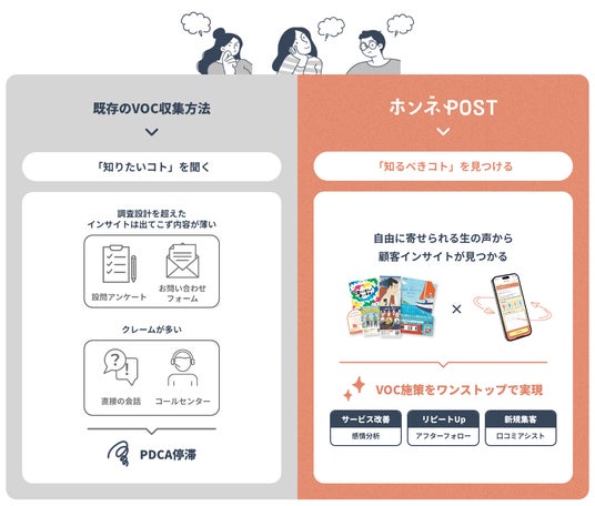 「顧客の小さな声を、ビジネスの大きな力に」をコンセプトに、アンケートには出てこない「ちょっとした本音」から最短で顧客体験向上を実現する、デジタルレターのVOCソリューション。
