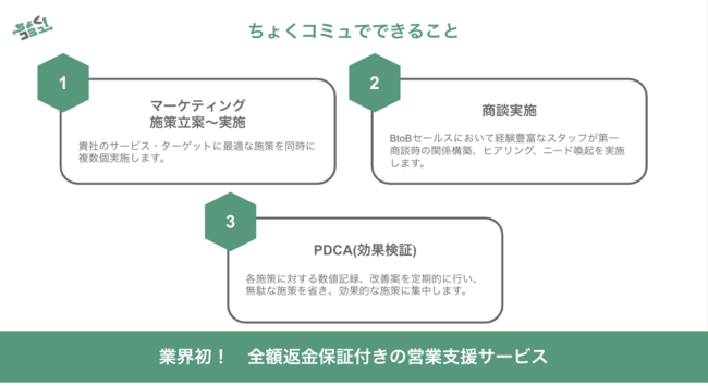 結果にコミットした営業支援サービスをお探しの方はぜひ「ちょくコミュ!」をご検討ください。