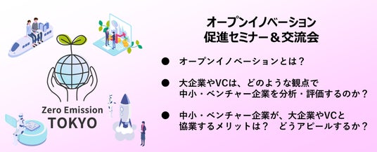 本イベントは、都内のベンチャー・中小企業等が、資金・販路・人材等を潤沢に有する事業会社等とのオープンイノベーションにより実現しようとする事業化・技術開発等の取組に関する経費の一部を補助する「ゼロエミッション東京の実現等に向けたイノベーション促進事業」の一環として実施します。