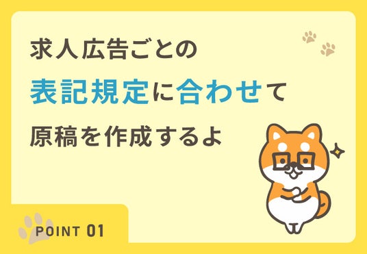 求人サイトには年齢や文章の書き方などのルールがあります。求人サイトごとにルールが異なるため各サイトのルールに合わせて求人原稿を作成しないと、求人原稿が非掲載になってしまう事も。