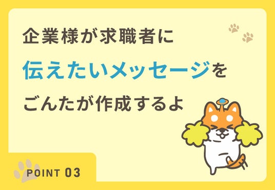 伝えたいメッセージはたくさんあるけど、うまくまとまらない。そんな企業様の想いをそのまま求人に使える文章でごんたが用意します。