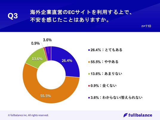 「Q3.海外企業直営のECサイトを利用する上で、不安を感じたことはありますか。」(n=110)と質問したところ、