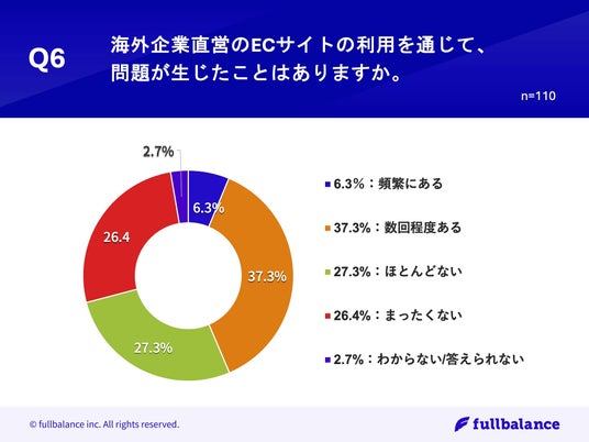 「Q6.海外企業直営のECサイトの利用を通じて、問題が生じたことはありますか。」(n=110)と質問したところ、