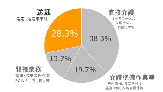 また一方で介護業界においては、「送迎」が業務全体の約30%を占め、大きな負担になると共に介護人材不足の遠因にもなっています。