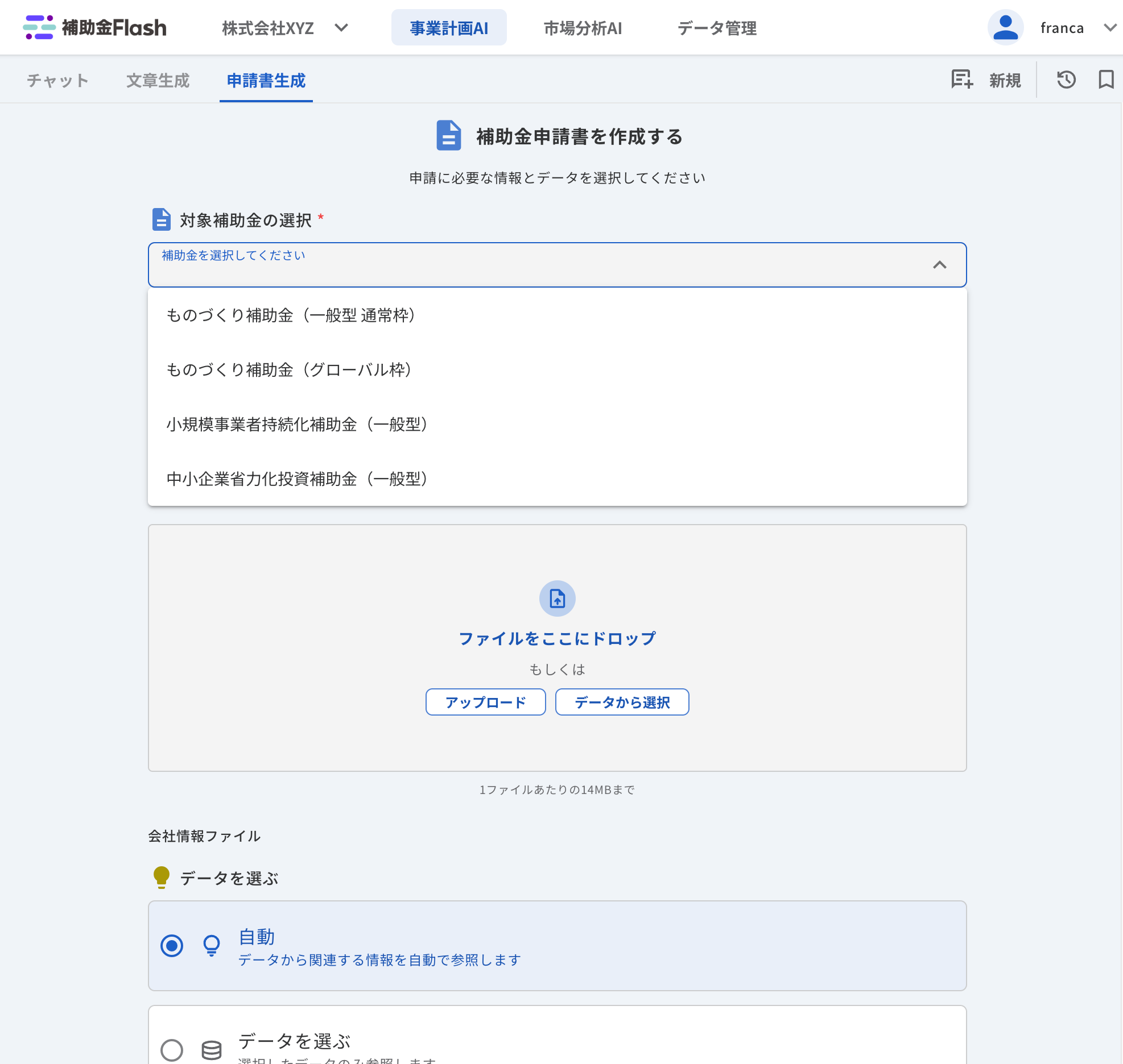 株式会社Franca AI(本社:東京都中央区、代表取締役:井上舜平)は、補助金申請SaaS「補助金Flash」において、