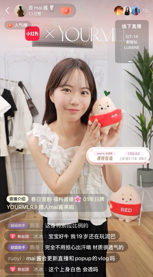 2025年5月13日まで開催された「YOURMLE」ポップアップイベント(ルミネエスト新宿)では、mai氏のREDアカウントを通じてライブコマースを初実施。日本国内のリアルイベントと、中国向けライブ配信を連動させたこの取り組みにより、
