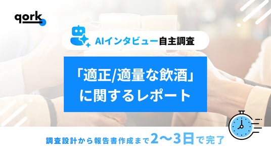 今回の調査では忘年会/新年会シーズンに先立つ2024年11月下旬に、飲酒習慣や性別年代の異なる9名の対象者への定性インタビューを実施しています。この際、生成AIが回答者それぞれと直接対話を行うAIインタビュー方式を採用し、聴収結果の分析にもAIを用いることで、調査設計から報告書作成まで実働2~3営業日程度での超高速進行を実現しています。(インタビューは1人1時間程度×9名分を実施)
