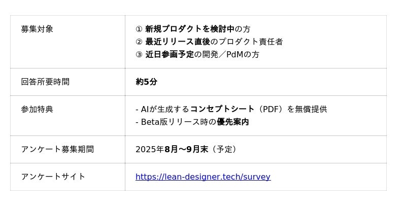 - 9月のサービスリリースに先立ち、アイデア・課題感を伺うアンケート特設サイト を開始