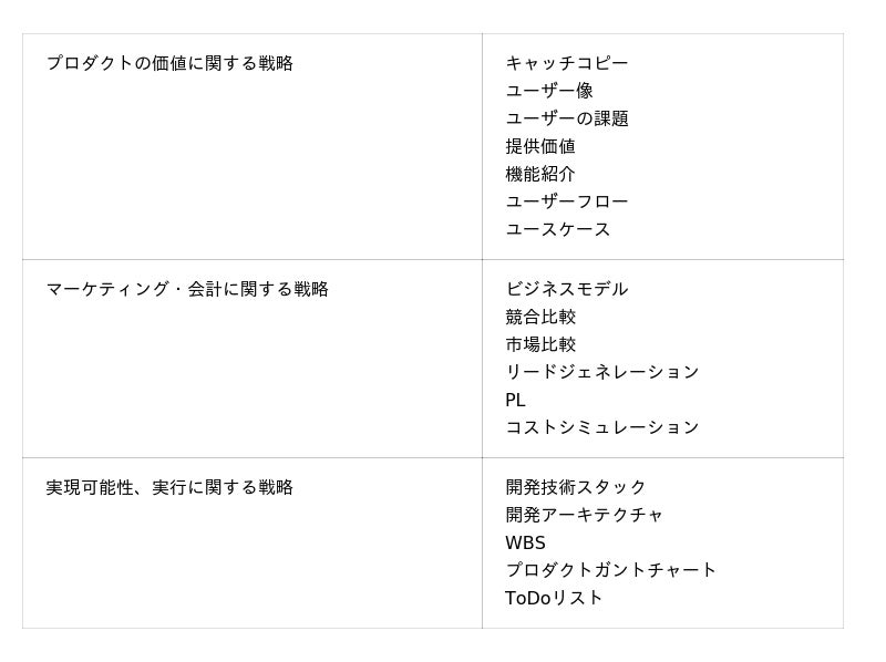 - アンケート回答+希望者全員に、UX・開発方針からマーケティング・会計・ビジネスモデルまで事業戦略を精密に俯瞰する戦略コンセプトシート を無償で提供