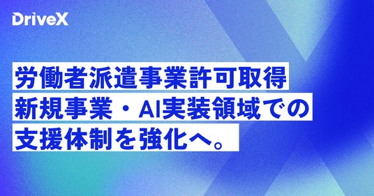 株式会社DriveX(本社:東京都渋谷区、代表取締役:永田篤広)は、2025年12月1日付で労働者派遣事業許可(許可番号:派13-318328)を取得したことをお知らせいたします。