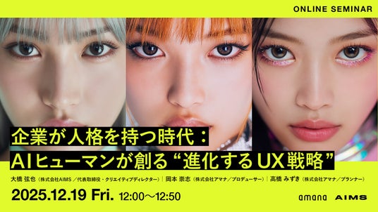生成AI技術を活用した戦略型クリエイティブソリューションを展開する株式会社AIMS(本社:東京都品川区、代表取締役:大橋弦也、以下「AIMS」)は、2025年12月19日(金)12:00から「企業が人格を持つ時代:AIヒューマンが創る“進化するUX戦略”」をテーマに、株式会社アマナと合同オンラインセミナーを開催します。