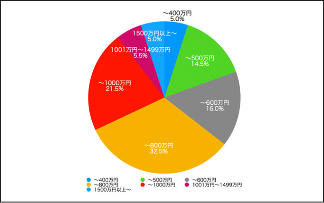 7割近くの人が800万円未満を理想年収として考えていることがわかります。
