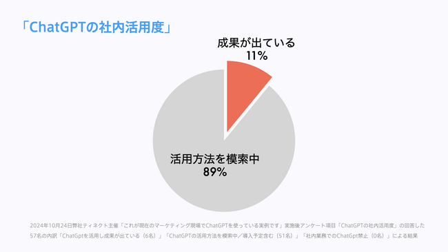 この結果は、多くの企業がChatGPTの真の力を引き出し、業務へ効果的に組み込む方法をまだ見出せていないことを示しています。
