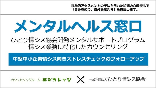 一般社団法人ひとり情シス協会(事務局:清水 博、所在地:東京都千代田区二番町)は、公認心理師・臨床心理士が運営するカウンセリングルームEncourage(群馬県高崎市)と提携して、中堅中小企業のITエンジニアで社内の情報システムを担当する、ひとり情シスや少人数情シス向けにメンタルヘルス窓口を開設します。