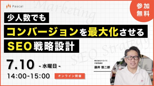 SEOツール「パスカル」の開発・提供を行う株式会社オロパスは、2024年7月10日(水)に「少人数でも成果を出すためのSEOの戦略設計」をテーマに無料ウェビナーを開催いたします。