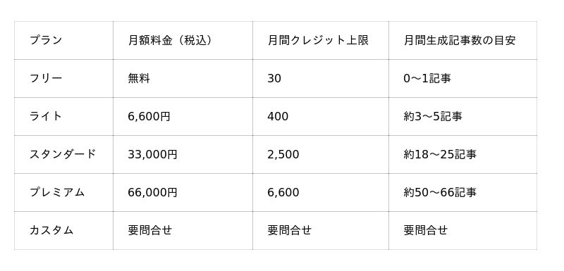 ■ 料金プランmagicss v2はクレジット制を採用しており、初期費用無料・1か月単位の契約でご利用いただけます。フリープランではカード登録不要で約1記事分の生成を無料体験可能です。