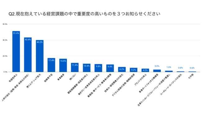 最も重要度の高い課題として、51.4%の経営者が「収益向上」と回答