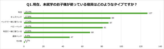 「Q1.現在、未就学のお子様が使っている寝具はどのようなタイプですか?」の質問に対し、結果は次のとおりとなりました。