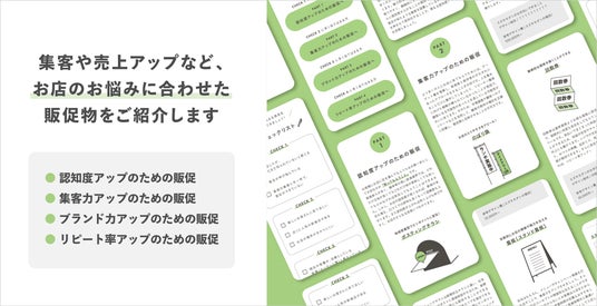 『販促応援ブック -飲食店編-』は、飲食店の売上アップや集客でお悩みの方へ向けた販促ツールをご紹介する資料です。