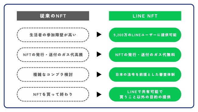 ・9,200万のLINEアプリユーザーへNFTを提供することができる