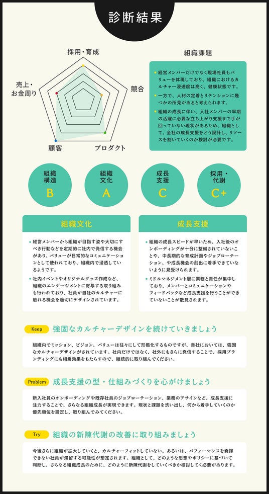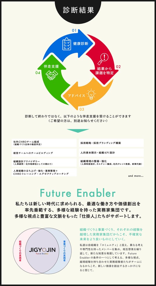 組織づくり総合支援企業・株式会社事業人(本社:東京都港区、共同代表:宇尾野 彰大 他、以下「当社」)は、2024年4月より、新サービス「組織の健康診断」β版を提供いたします。現在、正式リリースに向けた準備と並行し、β版の利用希望者の募集を行っています。
