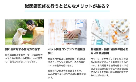 【獣医師監修ナビについて】「獣医師監修ナビ」は、「商品やサービスの魅力を飼い主に裏付けを持って伝えたい」「専門家に商品開発や監修をお願いしたい」という企業様と獣医師をマッチングするサービスです。