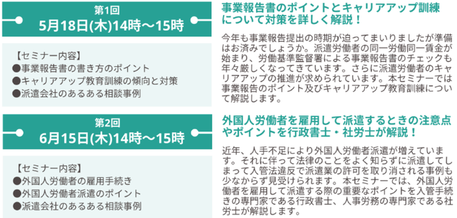 1.「派遣会社の労務管理お役立ちセミナー」5/18、6/15開催!