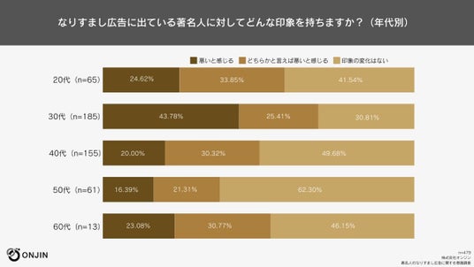 「悪いと感じる」割合が最も高い年代は30代です。「印象の変化はない」割合が最も高い年代は50代となっています。
