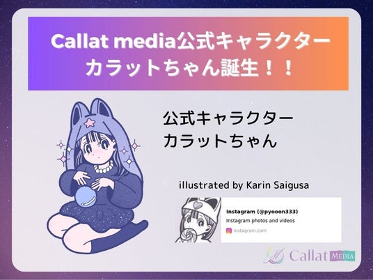 今回、Callat mediaではユーザーにより親しんでコンテンツを楽しんでいただくために、イラストレーターの三枝かりん様にご依頼させていただき、Callat mediaオリジナルの公式キャラクターを描いていただきました。今後、ますます独自性がありユーザーに楽しんでいただけるコンテンツ作成を心がけてまいります。
