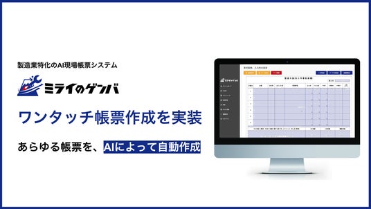 製造現場に特化した、AI電子帳票システム『ミライのゲンバ帳票』を提供する株式会社ミライのゲンバ(本社:東京都港区、代表取締役社長:佐藤 哲太 以下、ミライのゲンバ)は、現場運用に最適な電子帳票を自動生成する「ワンタッチ帳票作成」機能の提供を開始しました。この機能により従来、アプリの設計・開発を要するノーコードツールで、膨大なマニュアルを学習し、限られたスタッフにしか運用できなかった帳票の作成・更新業務が効率化されます。