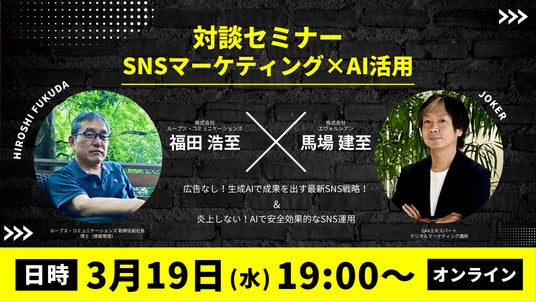 株式会社ループス・コミュニケーションズ(取締役副社長:福田浩至)と株式会社エヴォルシアン(代表取締役:馬場建至)は、2025年3月19日(水)19:00より、「SNSマーケティング×AI活用セミナー」をオンラインにて開催いたします。