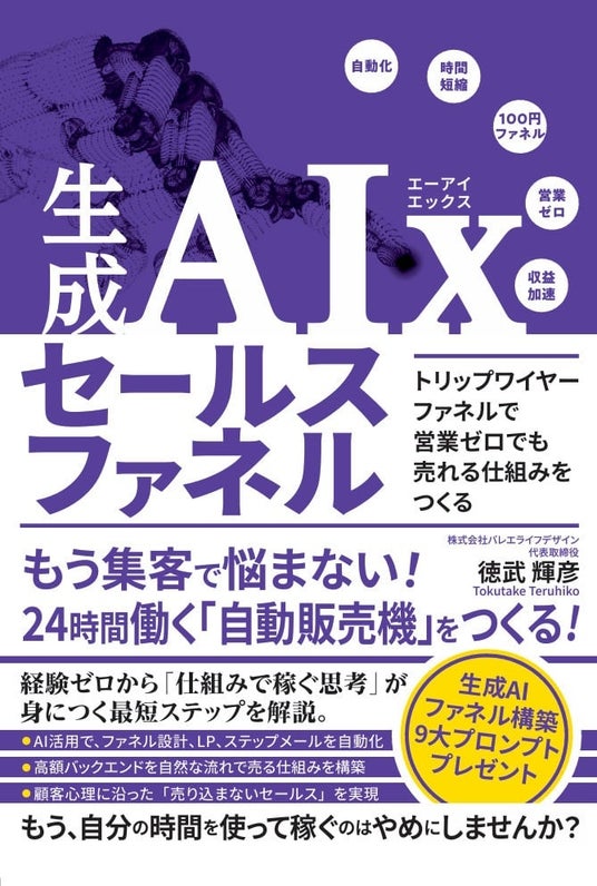 UTAGE構築サービス「UTAGEマーケティングシステム構築くん」を運営する株式会社バレエライフデザイン(本社:東京都港区、代表取締役:徳武輝彦)は、当社の代表取締役である徳武輝彦の書籍『生成AI × セールスファネル』が2025年11月30日に発売されることをお知らせいたします。